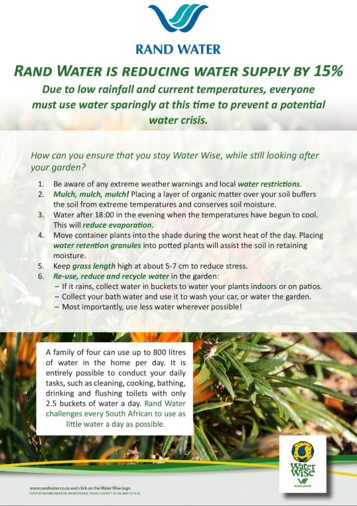 Rand Water Is Reducing Water Supply By 15%